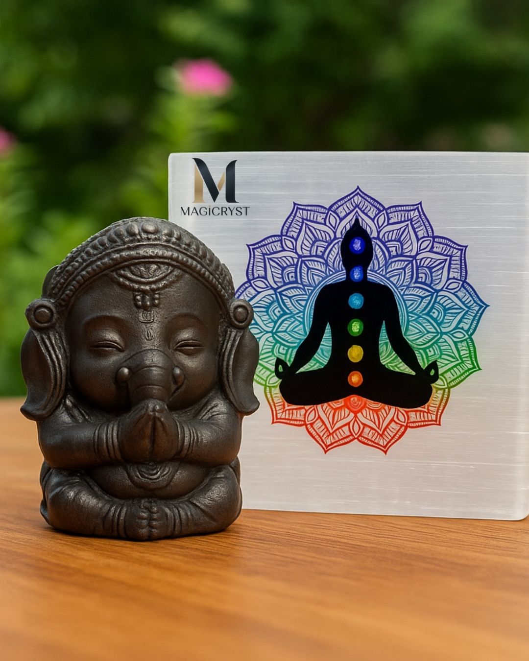🛒 Bring home the Pyrite Baby Ganesha with Selenite Charging Plate and welcome the blessings of wisdom, wealth, and wellness into your life.